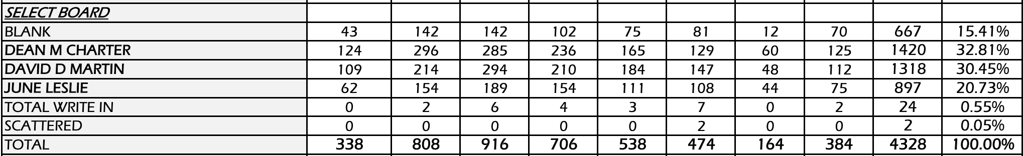 Leslie got 20% of the vote