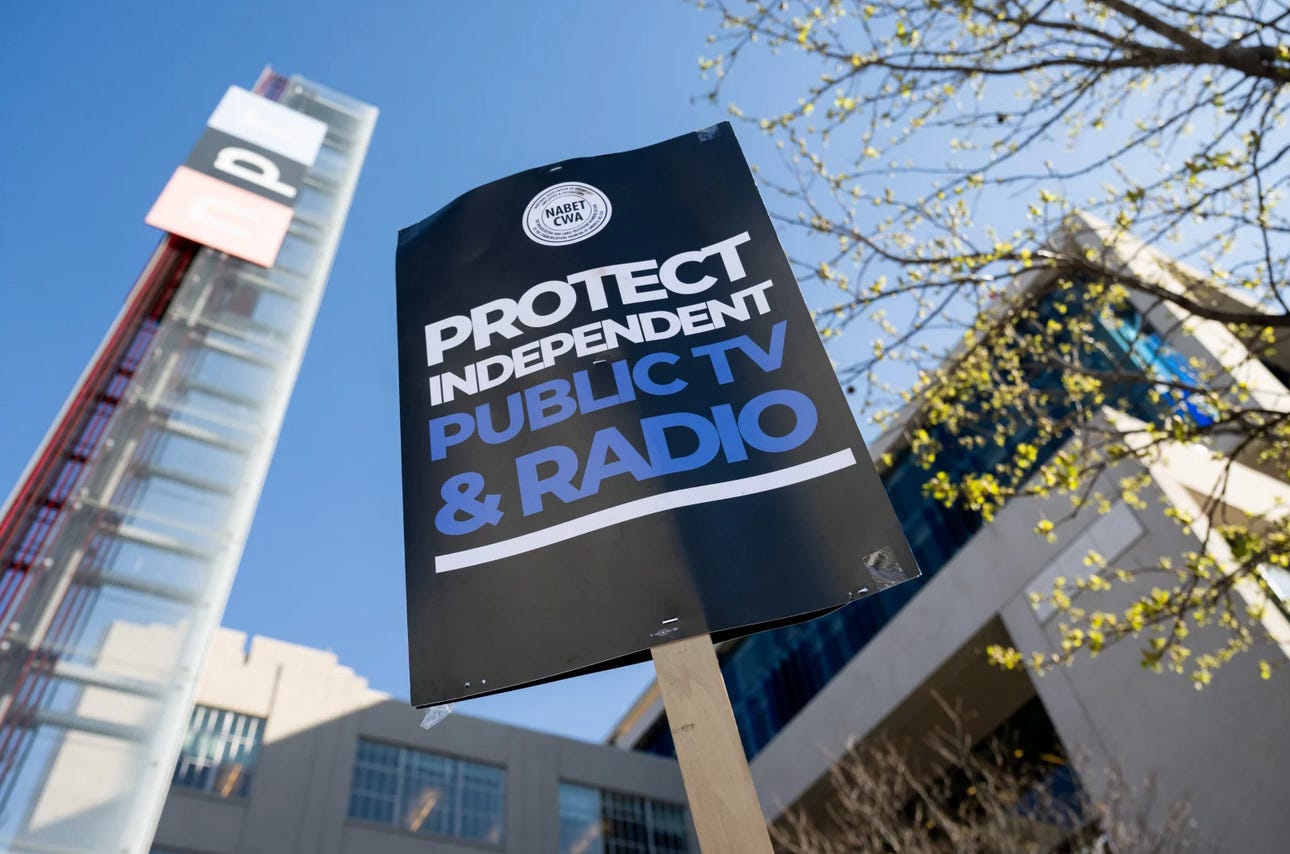 YESTERDAY - New York Times reported that a group of philanthropists have been quietly working to save NPR and PBS. The immediate solution is temporary, but it should keep all local stations operating for now. The Public Media Company will administer the disbursement of the $25.6 million total donations, which will come from organizations like the Knight Foundation which is donating $10 million of that. Stations will apply for this funding, and those that either relied on the Corporation for Public Broadcasting for more than 30% of their revenue or are one of the only local news sources serving that area will have priority. That application will be finalized soon.