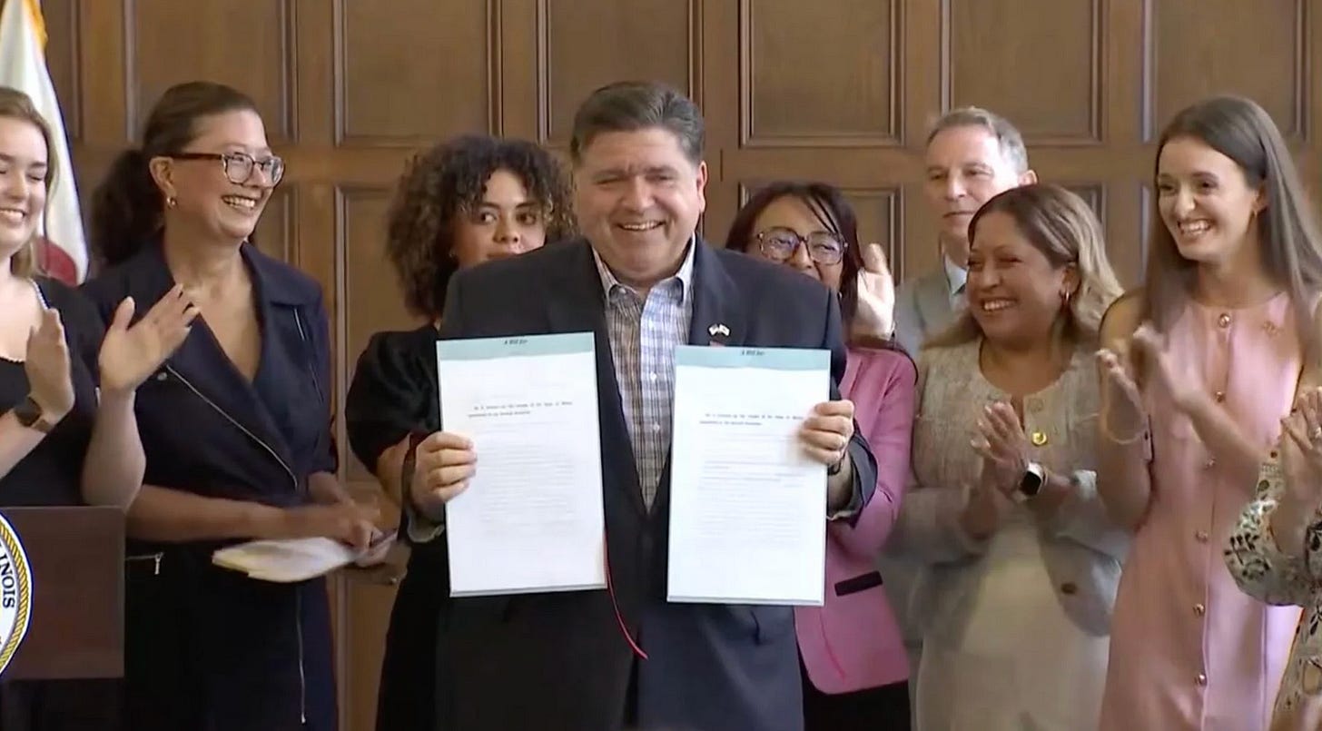 Fri, Aug 22 - Illinois Governor, JB Pritzker has signed HB 3709 into law requiring all public colleges to have a pharmacy with birth control, medication abortion, and OBGYN access. The bill was inspired by a student referendum question at University of Illinois Urbana-Champaign about student needs. Two former students Emma Darbro and Grace Hosey testified in front of the legislature to get them to support the bill that they helped create. They were both present at the bill signing. Darbo said: