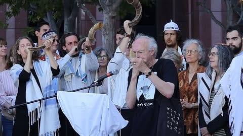 Mon, Aug 25 - Around 30 LA area rabbis protested in front of the Israeli Consulate against the starvation of Gazans.