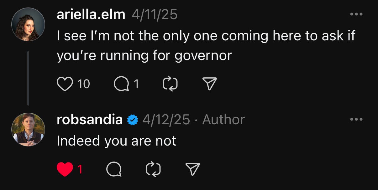 Rob Sands is the current State Auditor of Iowa and the only Democrat in the Iowa executive branch. A few weeks ago I commented on one of his Threads