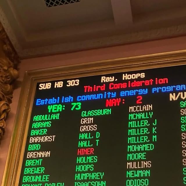 Wed, Nov 19 - The State House passed a bill that will create Ohio’s first Community Energy Pilot Program. It passed 73-2 with 24 people not voting because their countdown to the end of voting is real, unlike in the US House.