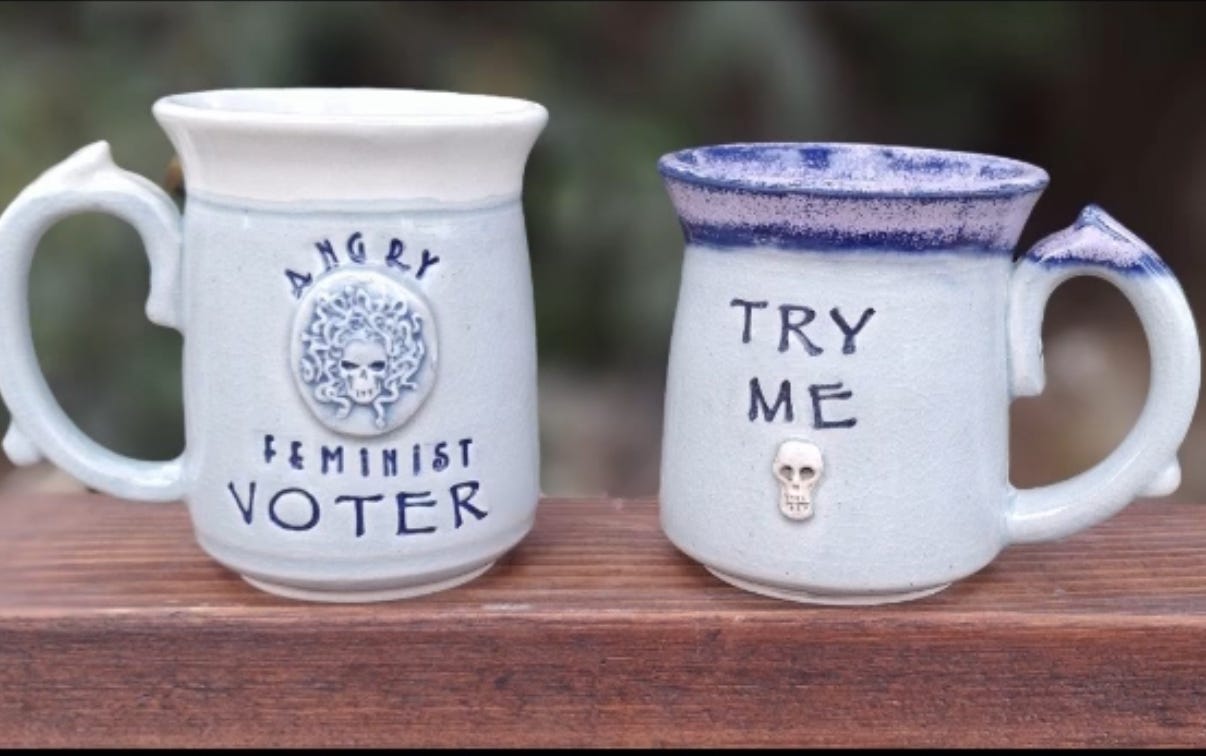 Leslie's mug designs are beautiful. Suggestion: I am so tired of emanating anger. I don't want to drink my coffee spewing anger. How about: appalled and EMPOWERED ?