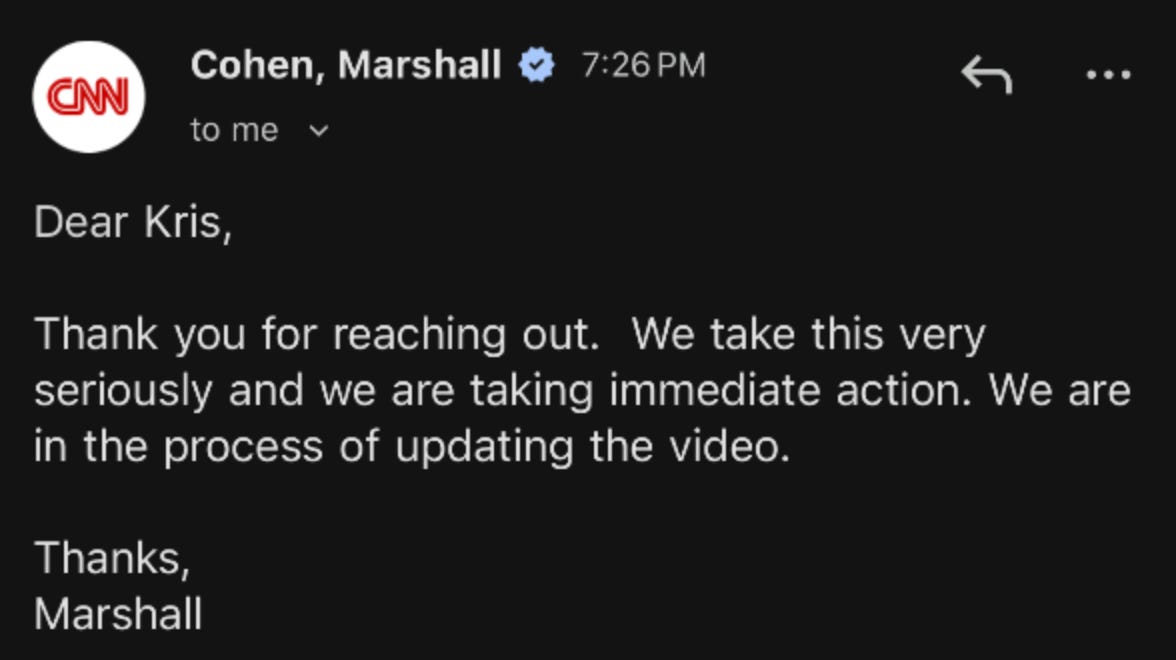 This is in my wins today, first off, cause I support my friends whenever possible, but also, because it wouldn’t have happened without Kris making the injustice public, and the Find Out Podcast fans tagging CNN a hundred times (and that’s just from their posts, I didn’t see what was on the CNN post itself).