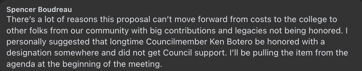 Given that, only two council members were against pulling the item, one of which put it on the agenda in the first place (nice reminder of how much voting at the local level matters.) It doesn’t seem like this was very popular to begin with. Which is only further confirmed by the fact that they had over an hour and half of public comment even though the vote was scrapped.