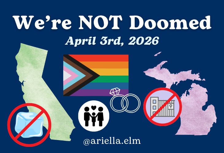 We might be careening backwards in our federal government, but it’s great to see that’s a US thing and not a global thing, at least not entirely. And that gives me hope and makes me feel less Doomed.