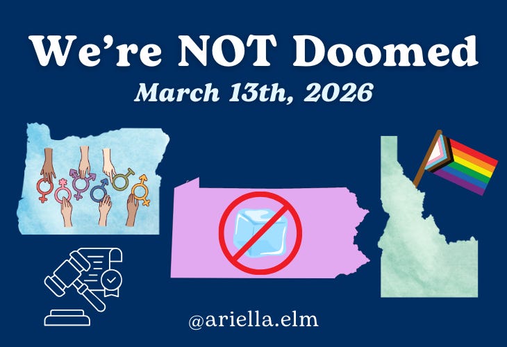 I don’t think I even have to explain why this makes me feel less Doomed. This law shouldn’t have to exist, but in this current climate, I’m so glad it most likely will.